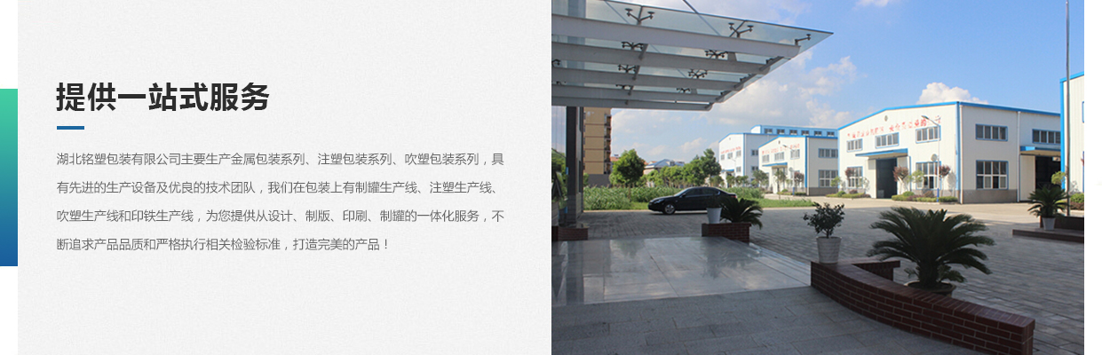 湖北銘塑包裝有限公司一家集研發(fā)、生產(chǎn)、銷售于一體的較優(yōu)秀民營企業(yè),技術(shù)力量雄厚,產(chǎn)品質(zhì)量可靠。位于交通暢順,百業(yè)興旺、經(jīng)濟(jì)富裕、政策開放的孝感開發(fā)區(qū)域。我們企業(yè)的營銷戰(zhàn)略是以建筑為土壤,以產(chǎn)品為種子,以質(zhì)量為肥料,讓綠色鋪滿全球。憑借多年來的行業(yè)經(jīng)驗(yàn),公司不斷進(jìn)行創(chuàng)新和研發(fā),為市場提供更廣泛的產(chǎn)品應(yīng)用領(lǐng)域和更好環(huán)保節(jié)能產(chǎn)品,為國家能源環(huán)保戰(zhàn)略和可持續(xù)發(fā)展戰(zhàn)略作出應(yīng)有的貢獻(xiàn)。     湖北銘塑包裝有限公司主要生產(chǎn)金屬包裝系列、注塑包裝系列、吹塑包裝系列,具有先進(jìn)的生產(chǎn)設(shè)備及優(yōu)良的技術(shù)團(tuán)隊(duì),我們在包裝上有制罐生產(chǎn)線、注塑生產(chǎn)線、吹塑生產(chǎn)線和印鐵生產(chǎn)線,為您提供從設(shè)計(jì)、制版、印刷、制罐的一體化服務(wù),不斷追求產(chǎn)品品質(zhì)和嚴(yán)格執(zhí)行相關(guān)檢驗(yàn)標(biāo)準(zhǔn),打造更好的產(chǎn)品!